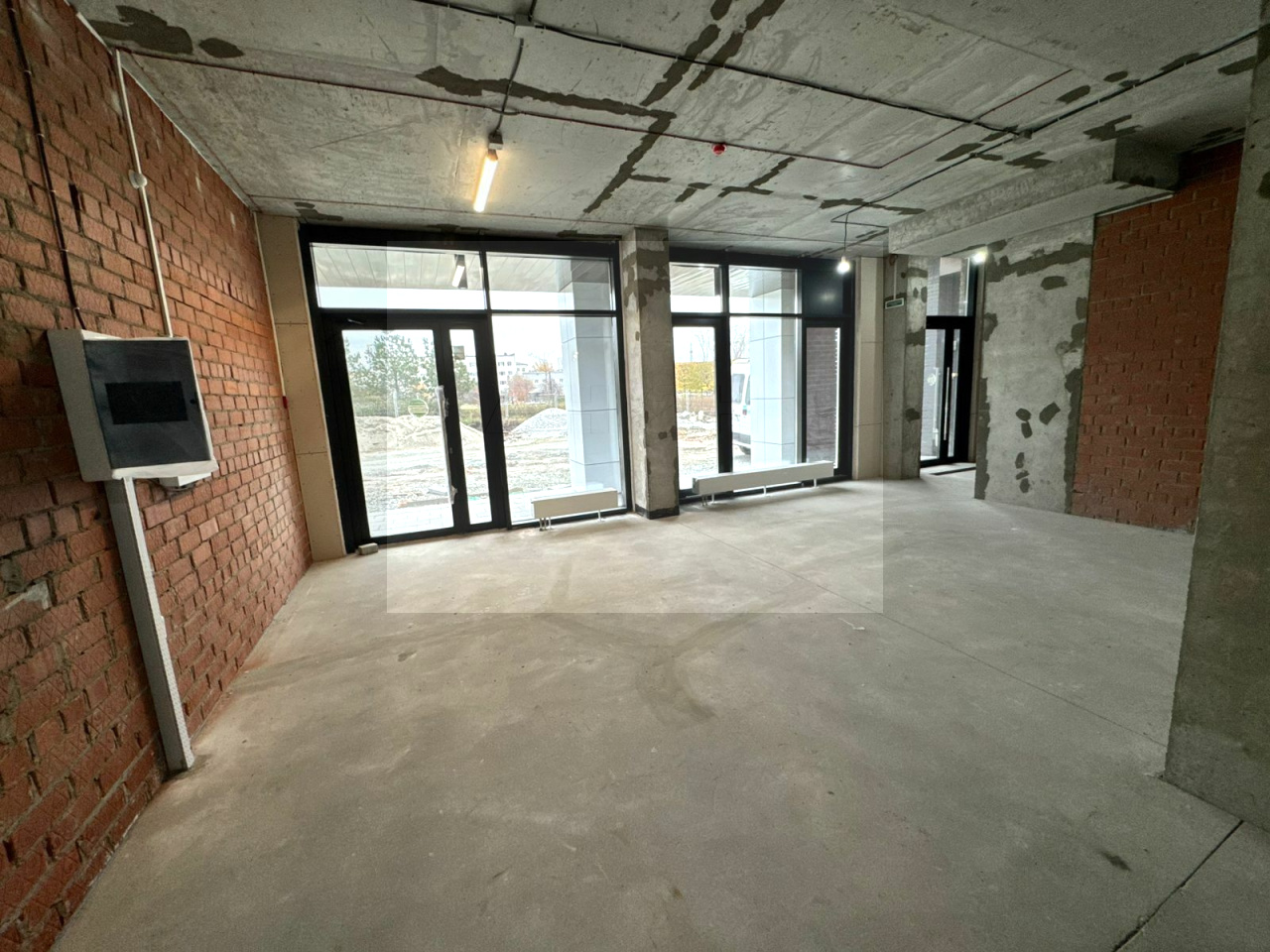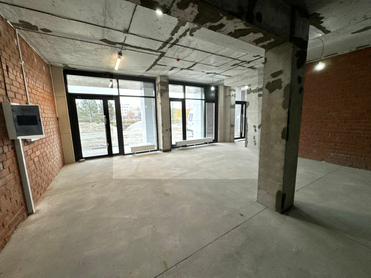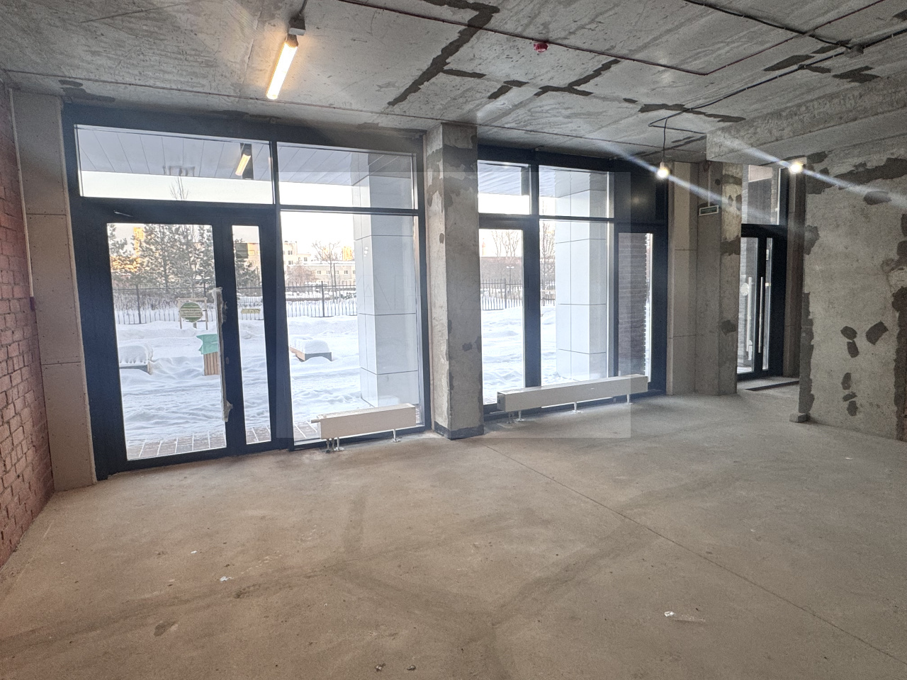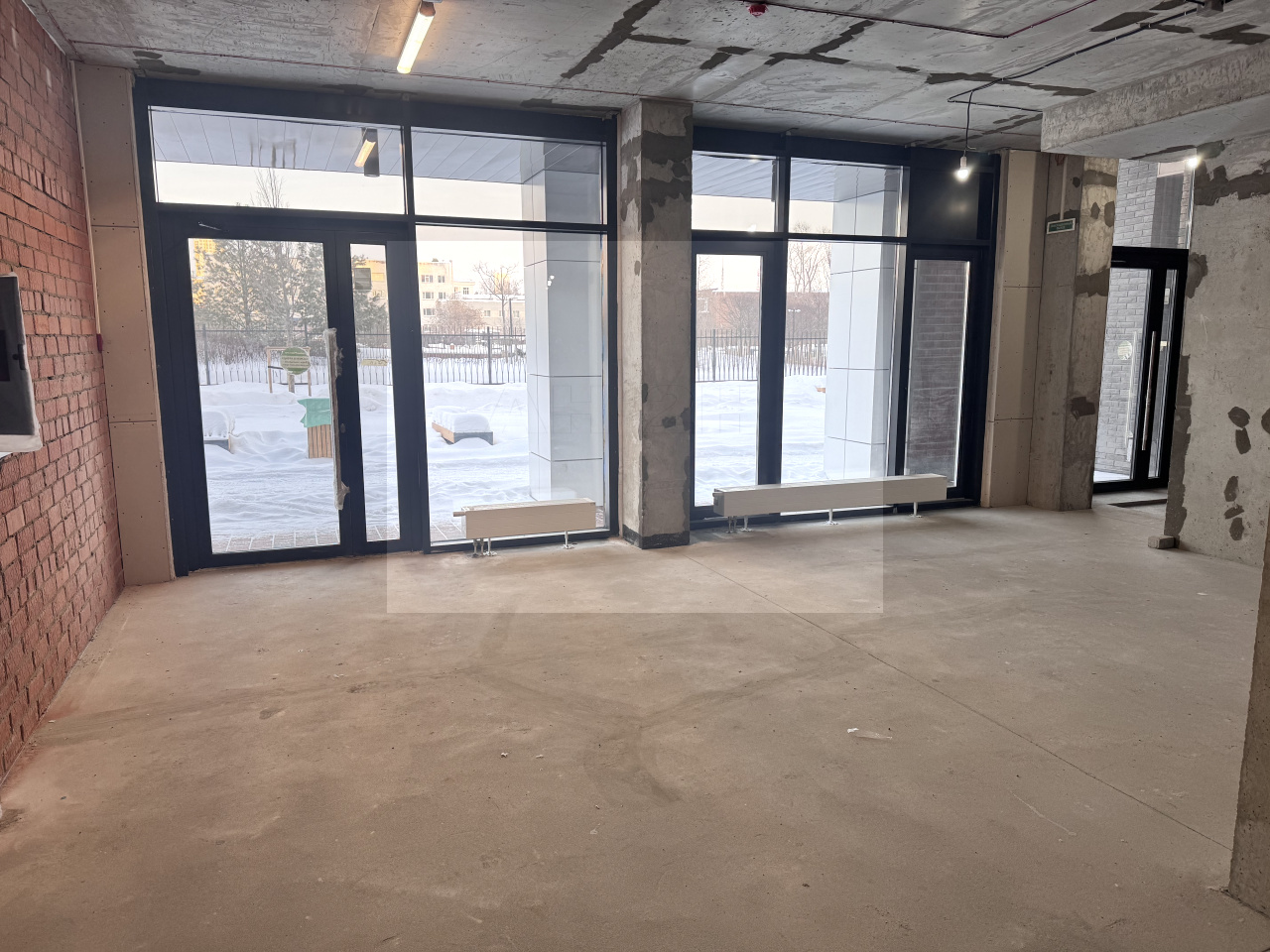Общая площадь - 83 кв.м., два отдельных входа, панорамное остекление с видом на центральный парк жилого комплекса. Пешеходный трафик, круглосуточный доступ, своя управляющая компания.