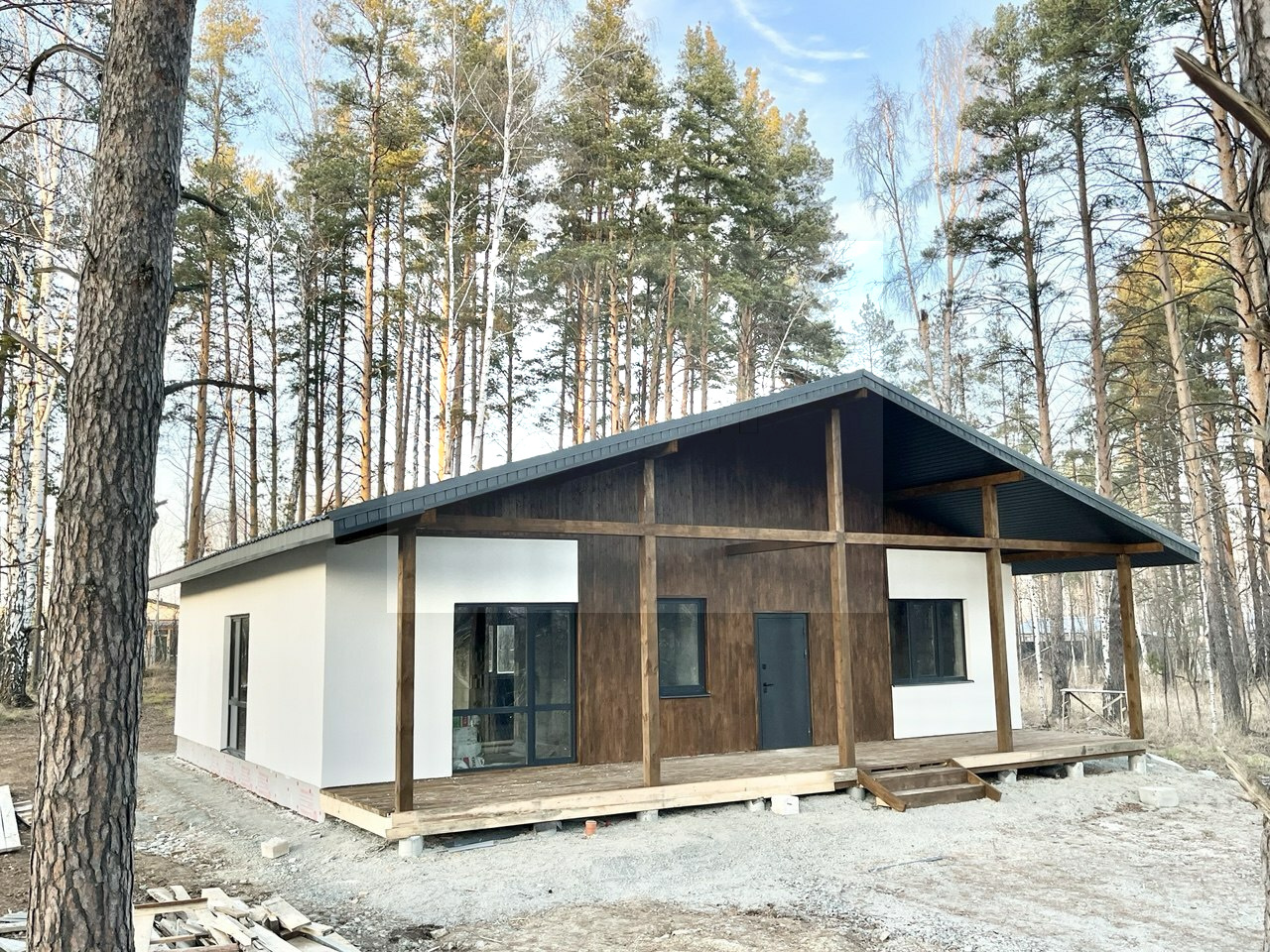 Продается новый , надежный коттедж ПРЯМО В ОКРУЖЕНИИ ЛЕСА , ВЕКОВЫХ СОСЕН И БЕРЕЗ напрямую от застройщика без лишних комиссий и переплат !!! Площадью 131 кв.м. расположенный на ровном , прямоугольном участке 15 соток , огромный лесной , вековой массив , чистый незагазованный воздух , водоем , развитая инфраструктура !!! В 10-х минутах от Екатеринбурга по Полевскому такту.