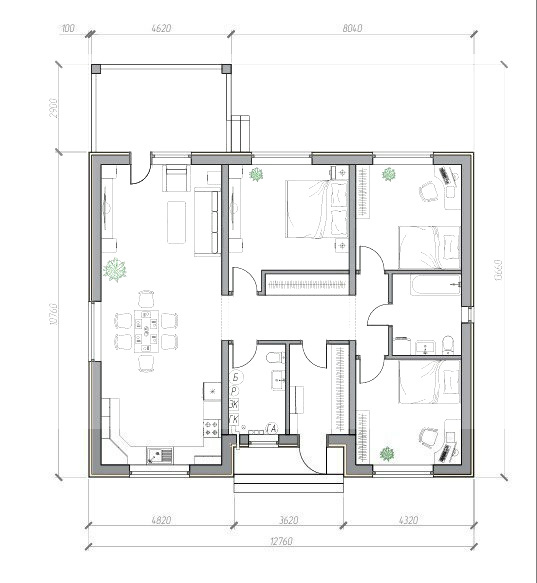 - Отопление - Теплый водяной пол по всему периметру дома